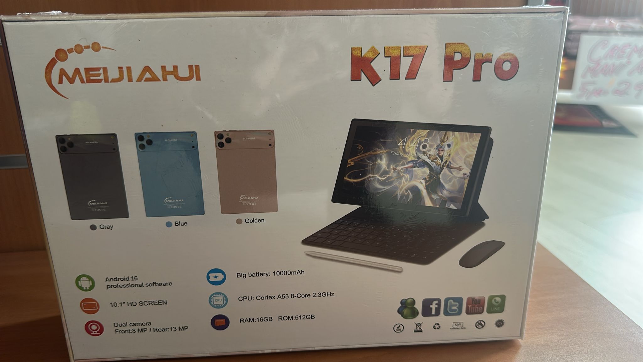 Tablet K17 Pro completa di accessori per un’esperienza d’uso completa. COLORAZIONI DISPONIBILI: (GOLDEN-BLUE-GRAY ) – Display da 10.1 HD. – Batteria da 10000mAh. – CPU: Cortex A53 8-Core 2.3GHz. – RAM: 16GB, ROM: 512GB. – Doppia fotocamera: anteriore 8 MP / posteriore 13 MP. – Sistema operativo Android 15. – Include cover, pellicola, tastiera e mouse. – Disponibile nei colori grigio, blu e oro.