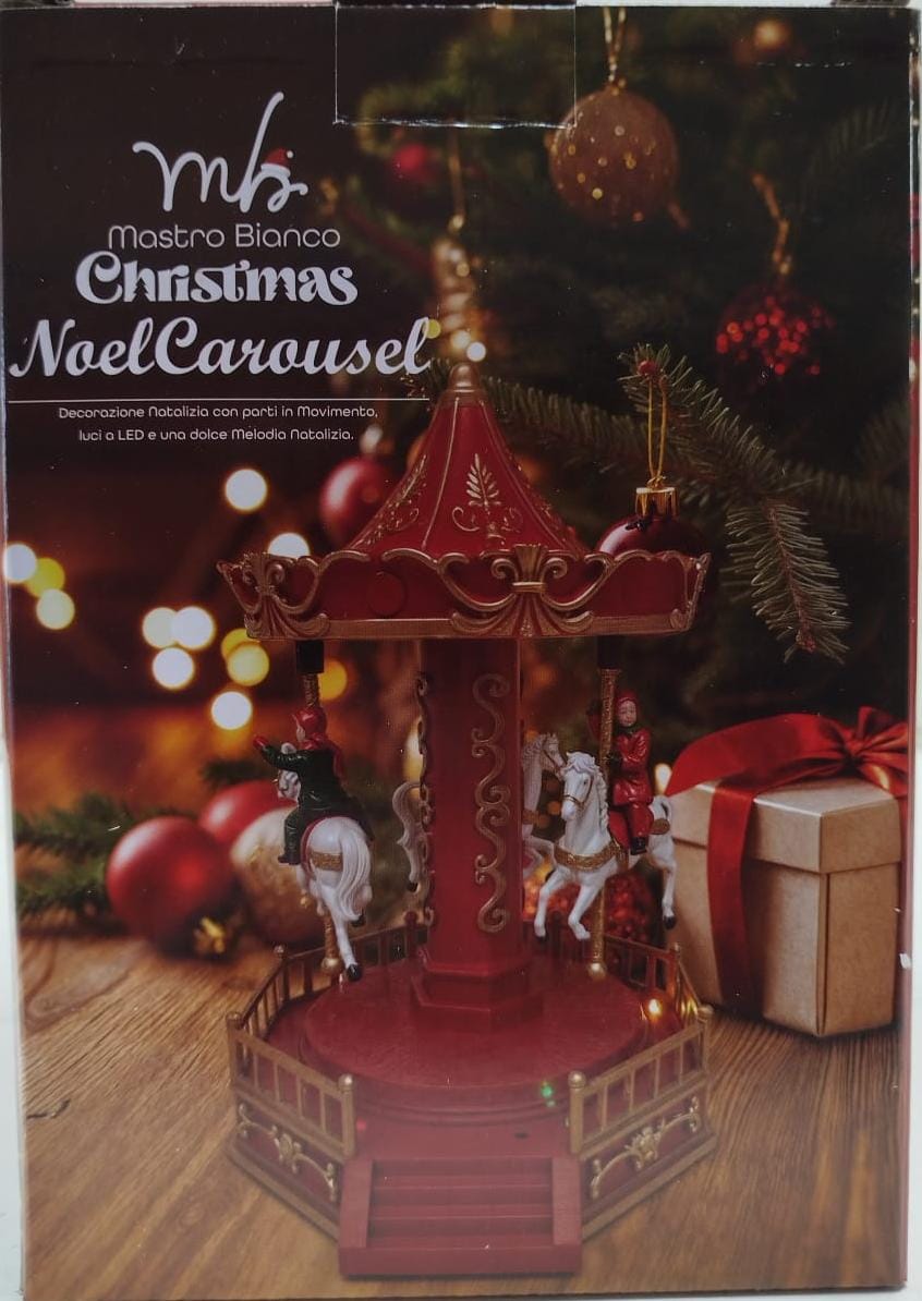 Elegante carillon natalizio a forma di carosello, Mastro Bianco. Un classico senza tempo che dona un tocco fiabesco alle tue decorazioni natalizie.