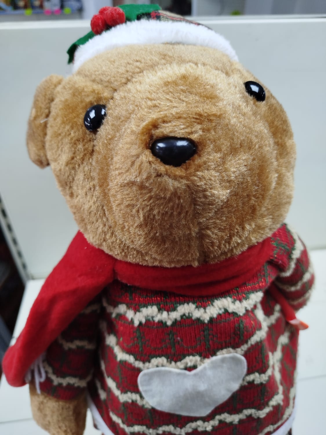 Morbido e grazioso orso feminile con abbigliamento natalizio, perfetto per creare un’atmosfera accogliente e festosa in casa o in negozio. L’orsetto è curato nei dettagli e realizzato con materiali di qualità, ideale come decorazione o idea regalo.